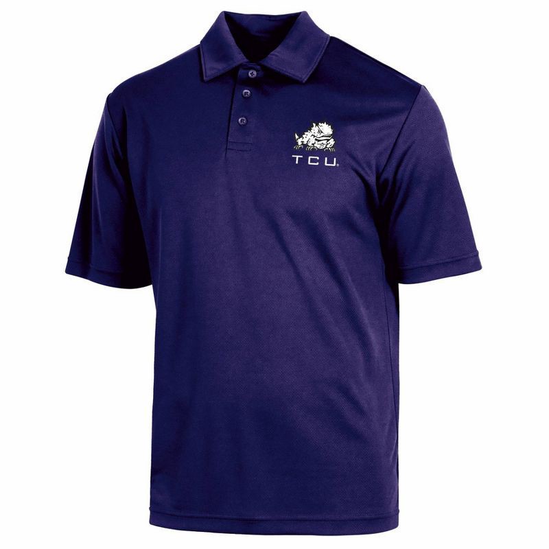 Rep your team from the office to the big game with this sleek officially licensed collegiate Short Sleeve Polo. This polo comes in team colors with an embroidered team graphic on the left chest. The c…