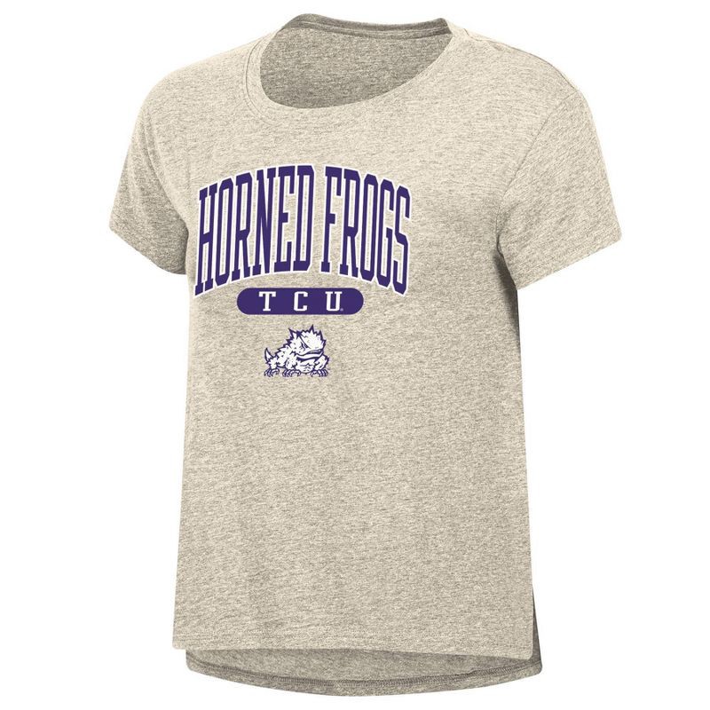 This officially licensed Relaxed Fit Short Sleeve Crew Neck Tee will keep you comfortable and trendy all season long. It features a great neutral oatmeal color that allows the NCAA team colored graphi…