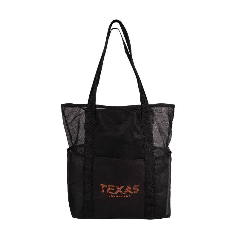 NCAA Texas Longhorns Black Mesh Tote: Sports Pattern, Polyester Shell