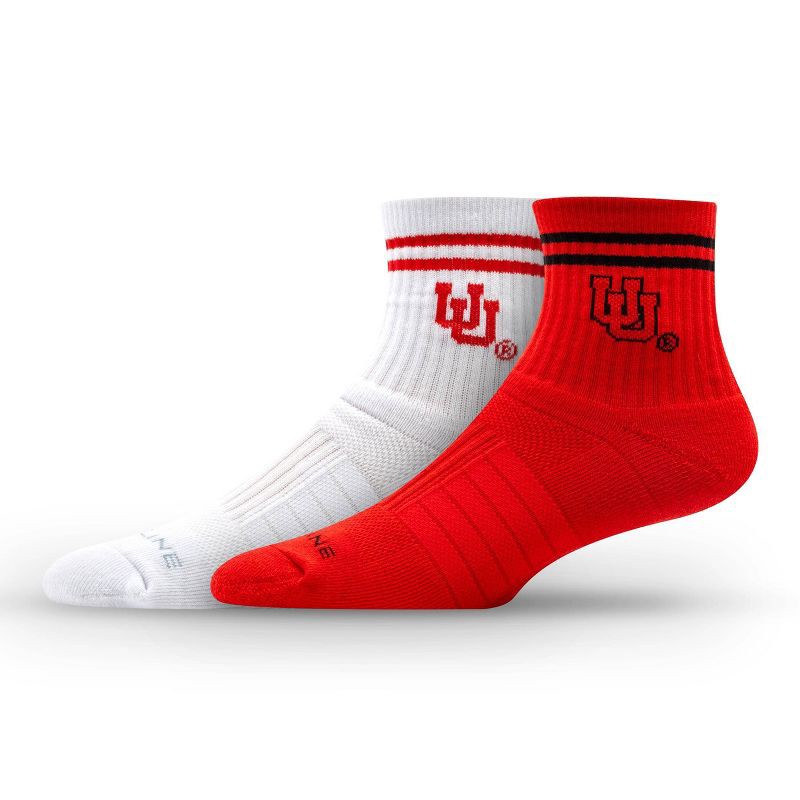 NCAA Utah Utes 2pk Socks: Crew Height, Cushioned Heel & Toe, Midweight Fabric