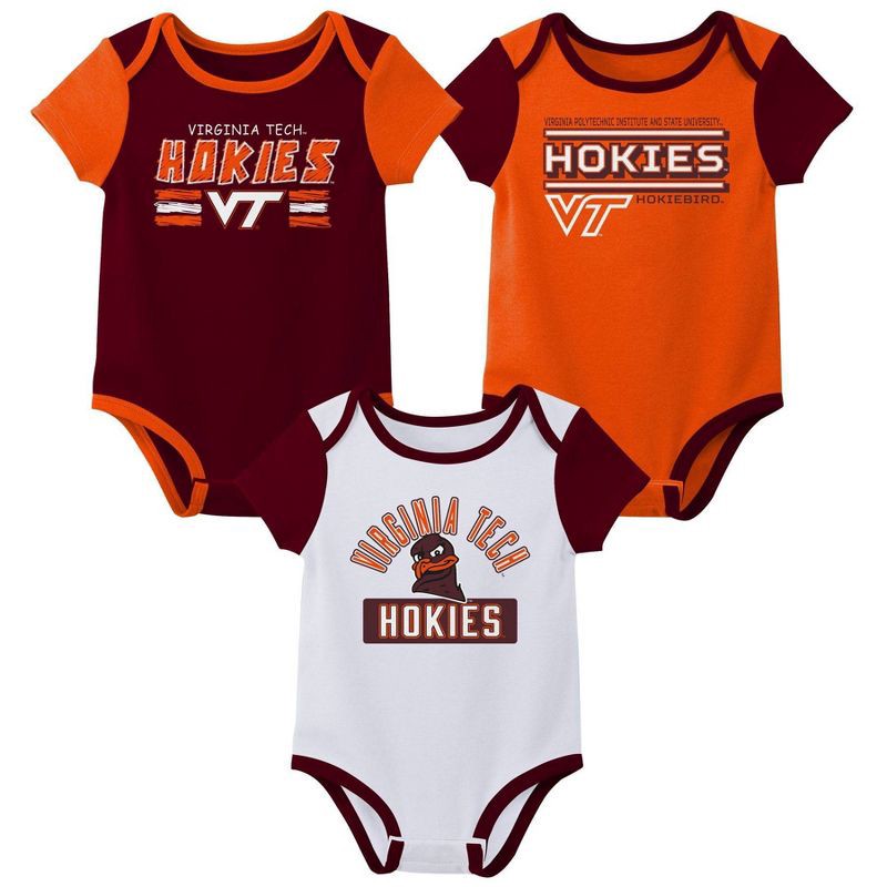 slide 1 of 4, NCAA Virginia Tech Hokies Infant Boys' 3pk Bodysuit - 0-3M, 3 ct