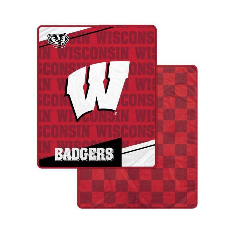 slide 1 of 3, NCAA Wisconsin Badgers Diagonal Ghost Checker Double Sided Blanket, 1 ct