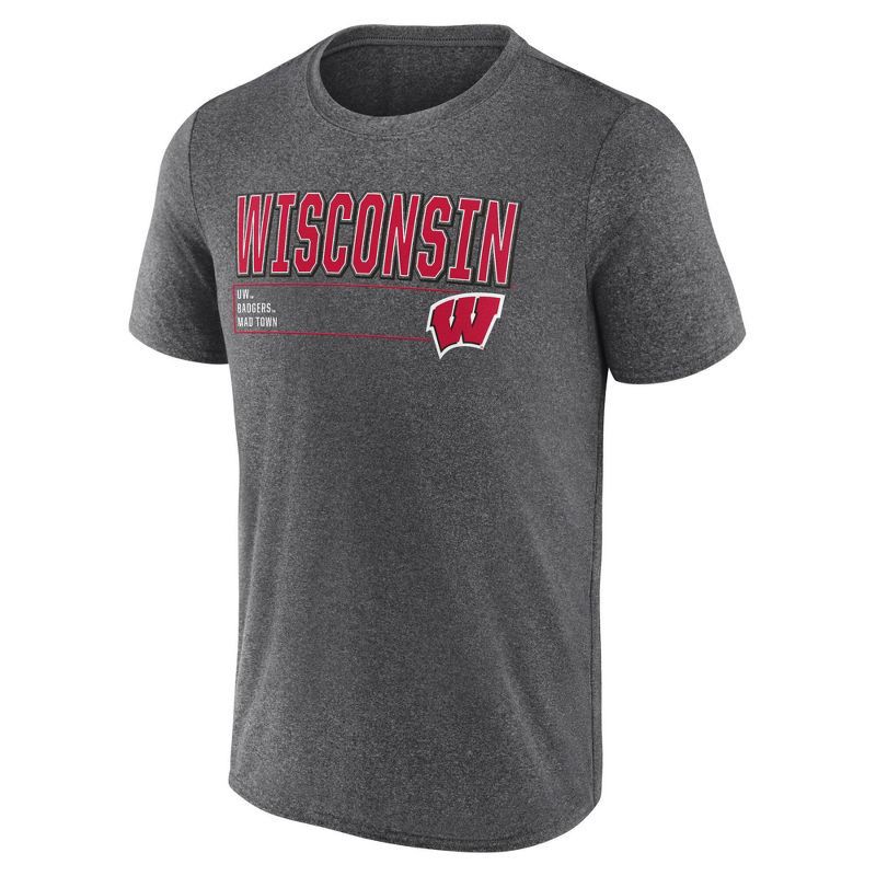 slide 1 of 3, NCAA Wisconsin Badgers Men's Charcoal Heather Poly T-Shirt - S, 1 ct