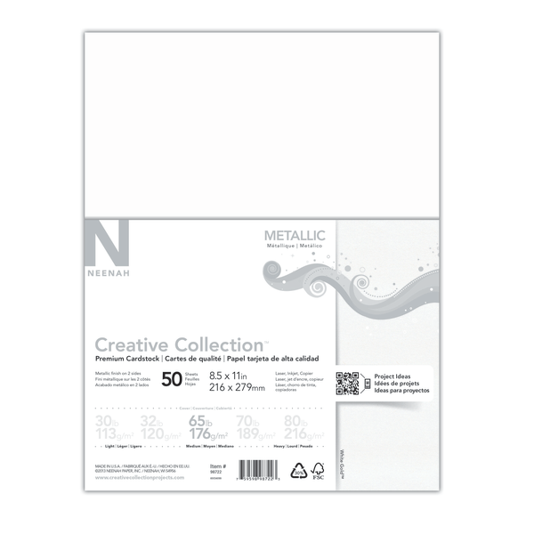 Neenah Creative Collection Metallic Specialty Card Stock, Letter Size, White Gold