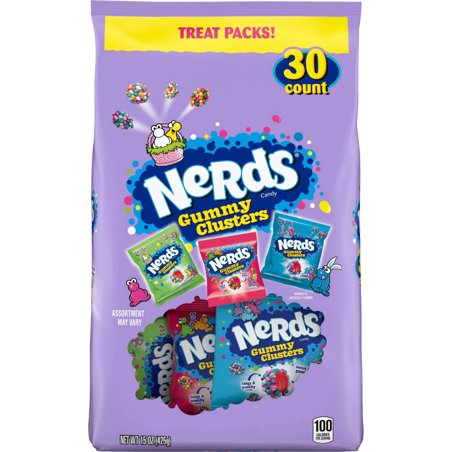 Easter hopping' Nerds Cluster Treat Variety Bag has 30 individual packages of Nerds Clusters. Each bag has different flavors: Rainbow, Very Berry, and Hoppin Clusters. Great for Egg hunts Perfect for …