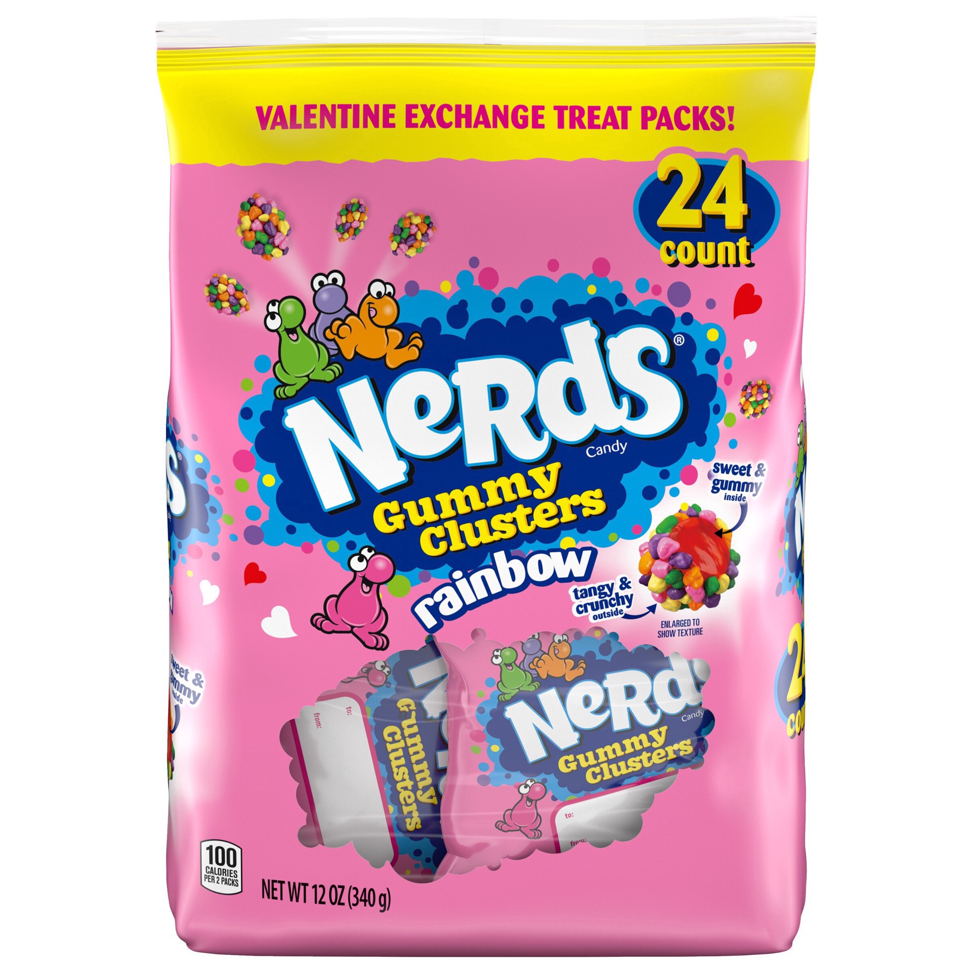 NERDS Gummy Clusters are a tangy, crunchy, sweet, gummy candy in fun poppable, bite-sized pieces. Sweet and gummy on the inside, tangy and crunchy on the outside. Rainbow NERDS surround fruity, gummy …