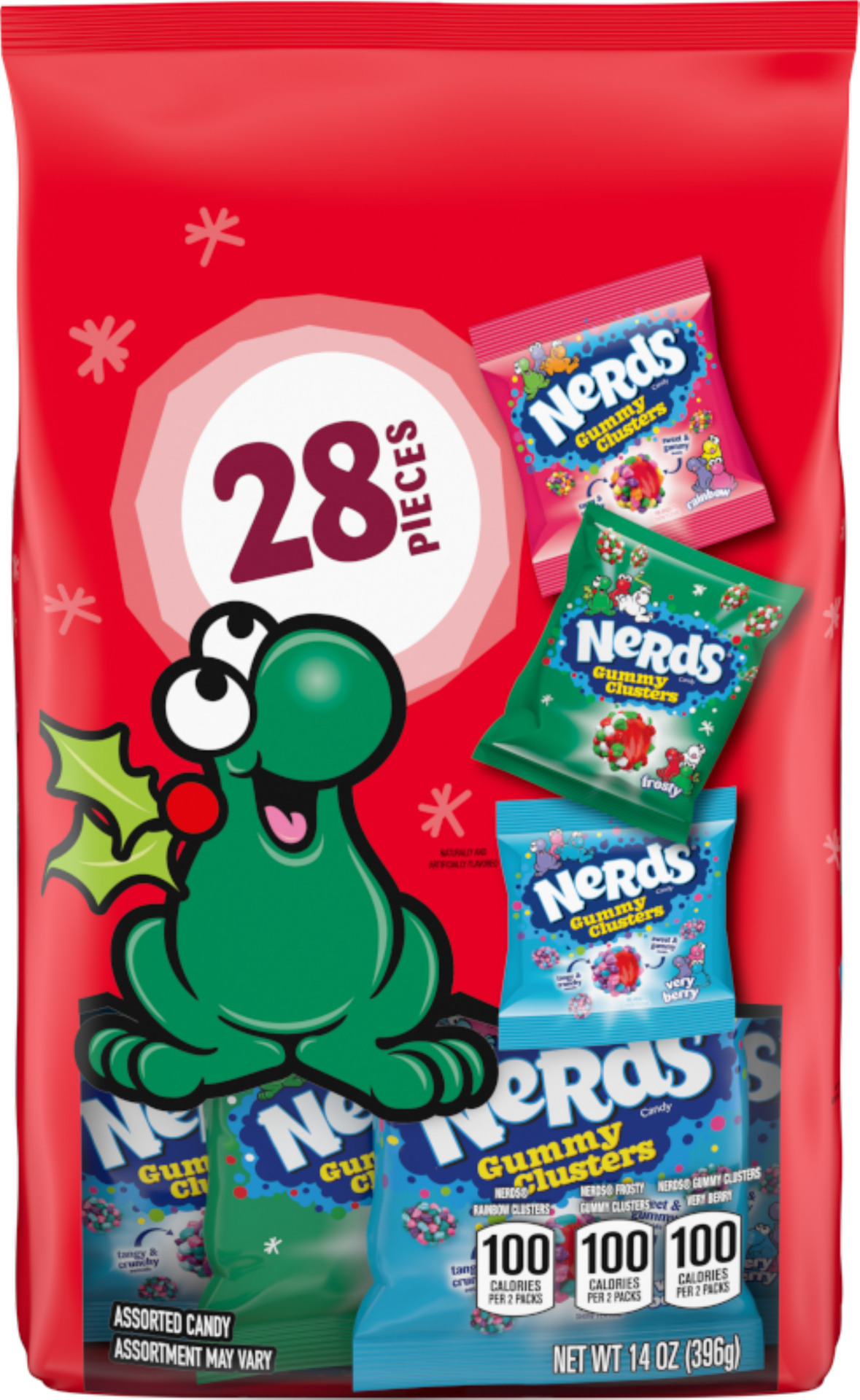 NERDS surround fruity, gummy centers. Those sweet little sparks are fantastic inventors. A poppable cluster, packed with tangy, crunchy NERDS. A candy so tasty, there aren't even words.