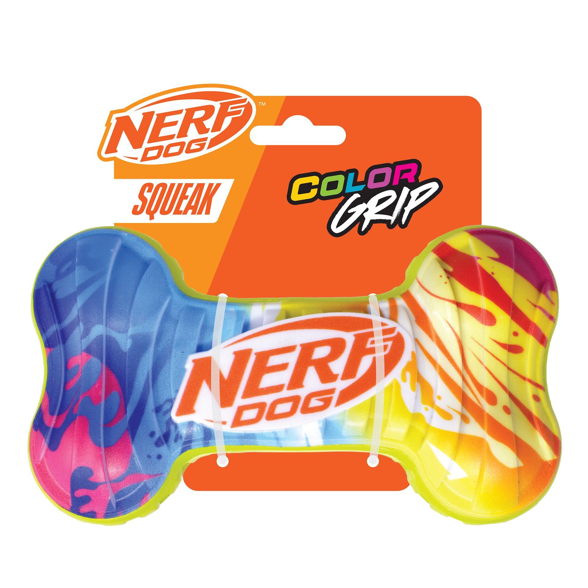 slide 1 of 1, Nerf Color Grip Squeaker Bone Dog Toy, Sm-Med