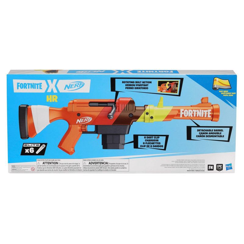 - DART-FIRING FORTNITE BLASTER REPLICA: The Nerf Fortnite HR blaster is inspired by the equipment used in Fortnite and comes in the Ruff Wrap inspired by Doggo