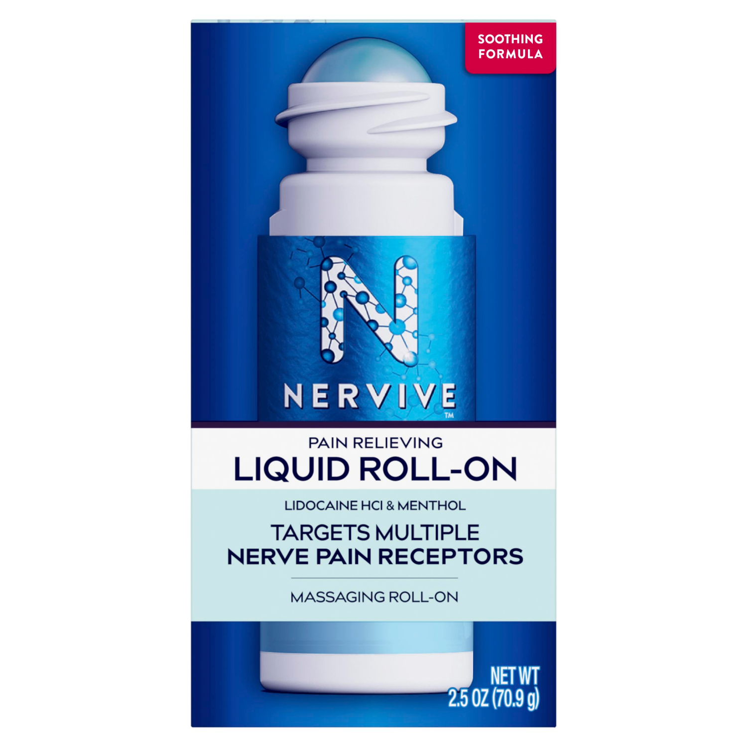 Nervive Nerve Care, Pain Relieving Roll On Liquid, Max Strength No-Mess Topical Pain Reliever with Lidocaine and Menthol for Toes, Feet, Fingers, Hands, Legs & Arms, 2.5 oz