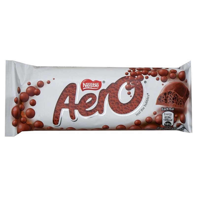 Nestle Aero Milk Chocolate Candy Bar is a bubbly milk chocolate candy produced in the UK using no artificial colors, flavors, or preservatives. Enjoy a taste of sweet, milk chocolate, from the UK.
