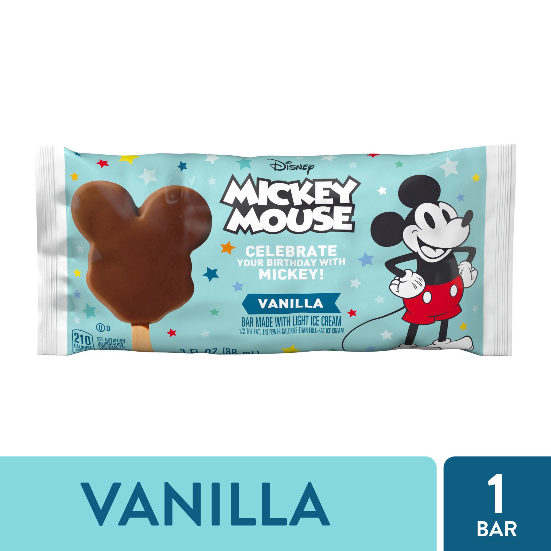 A Disney Mickey Mouse Vanilla Light Ice Cream Bar lets you enjoy a tasty frozen treat featuring your favorite Disney cartoon character. Shaped with Mickey Mouse ears, this frozen light ice cream bar f…