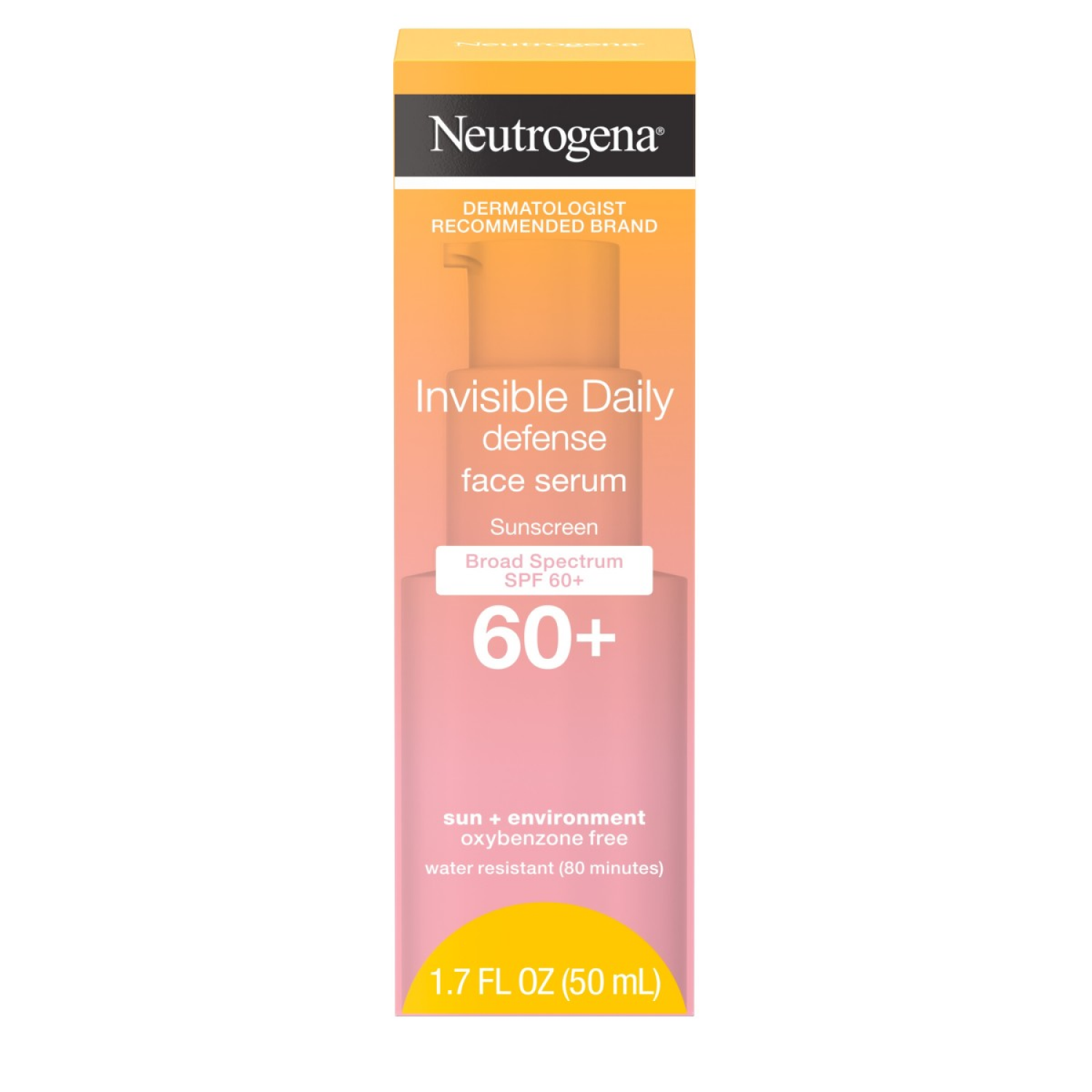 Protect skin from the sun for more radiant skin with Neutrogena Invisible Daily Defense Face Sunscreen + Hydrating Serum with SPF 60. This oil-free facial sunscreen serum from the #1 dermatologist rec…