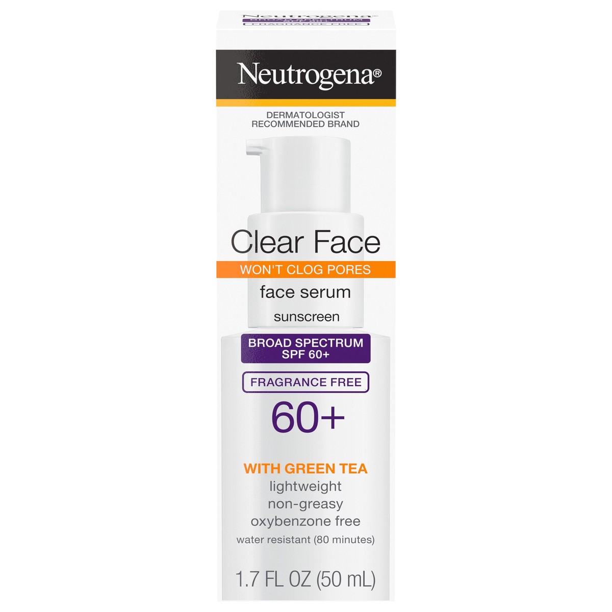 Neutrogena Clear Face Serum Sunscreen with broad spectrum SPF 60+ helps prep skin for makeup and preserve its natural moisture barrier while guarding against the sun. Formulated with Helioplex technol…