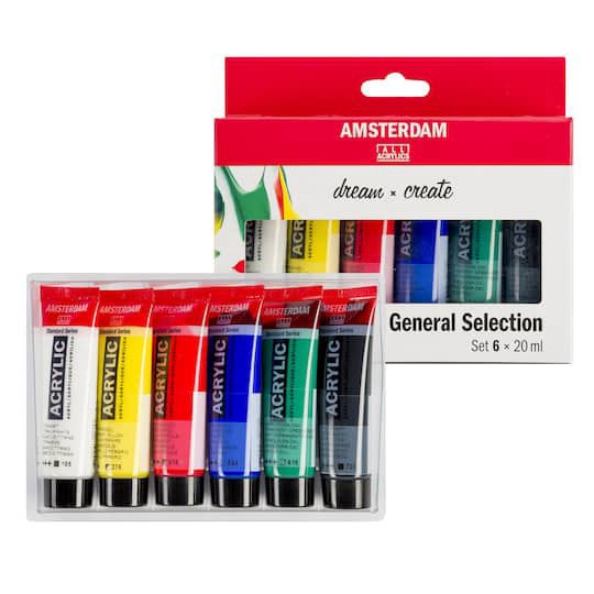 Buy the Amsterdam Standard Series 6 Color General Selection Acrylic Paint Set at Michaels. This set contains 6 tubes of acrylic paint that are perfect mixing colors for you to start your color paletteā¦