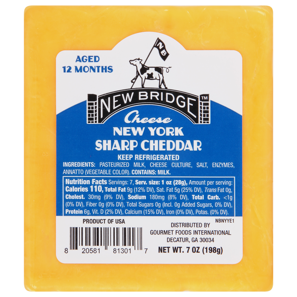 slide 1 of 1, New Bridge Cheese, Sharp Cheddar, New York, 7 oz