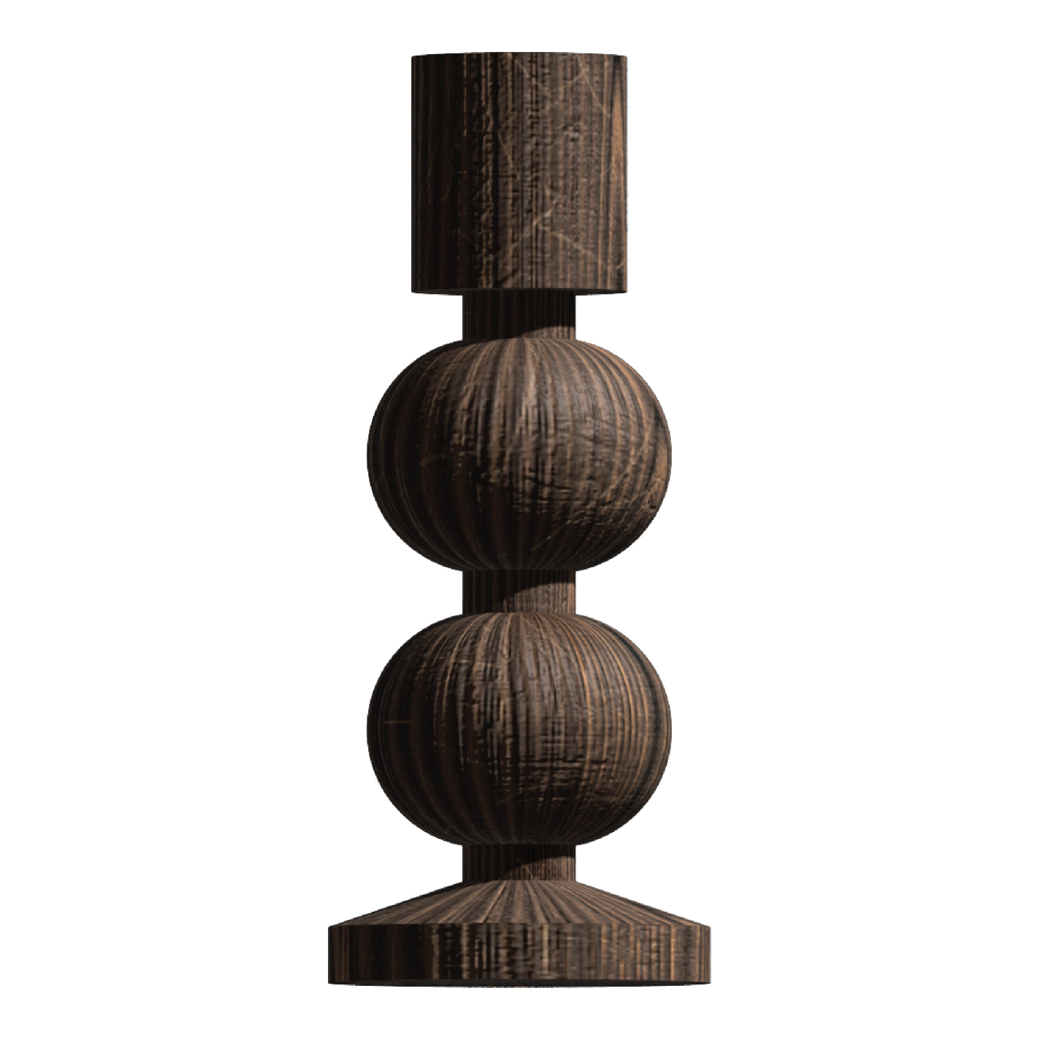 Modern bubble shape wood taper holder fits in well with multiple styles of décor. Perfect for a table scape, mantle, or end table.
