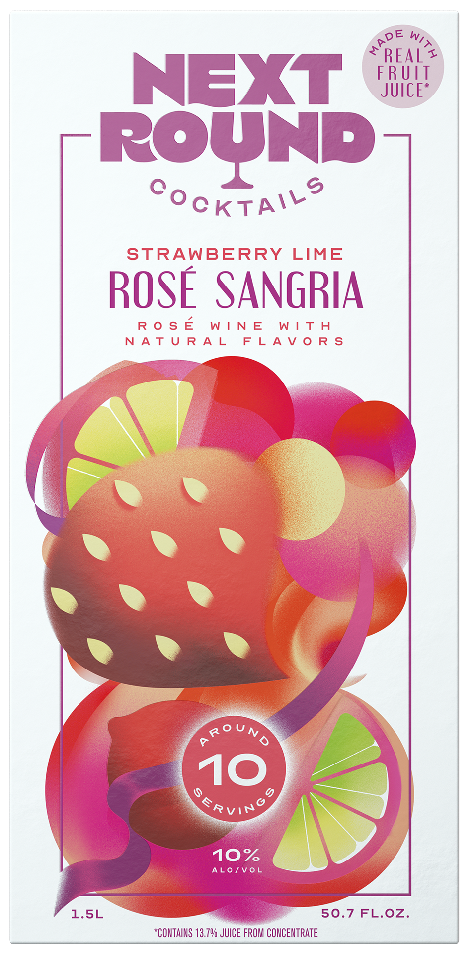 Next Round Cocktails Strawberry Lime Sangria Rose Wine Premixed Cocktail, 1.5 L Box