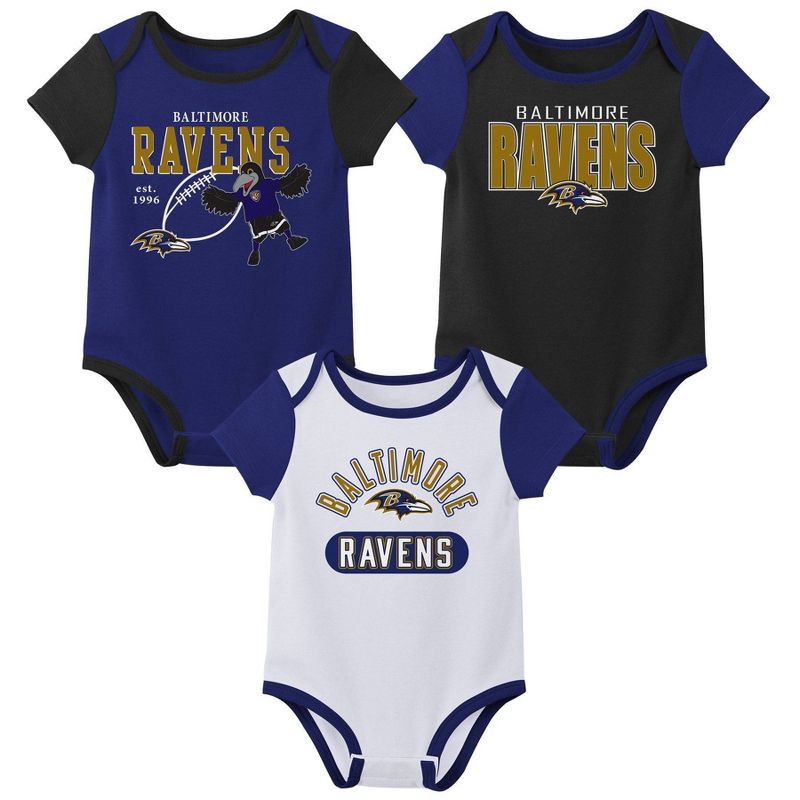 slide 1 of 4, NFL Baltimore Ravens Boys' White 3pk Bodysuit - 0-3M, 3 ct