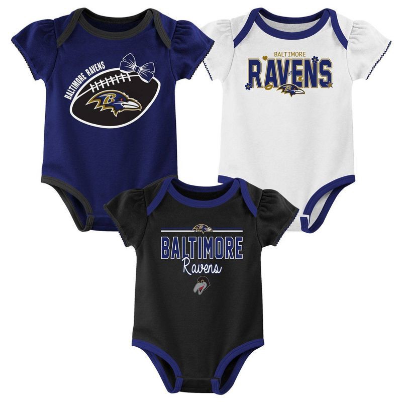 slide 1 of 4, NFL Baltimore Ravens Girls' White 3pk Bodysuit - 0-3M, 3 ct