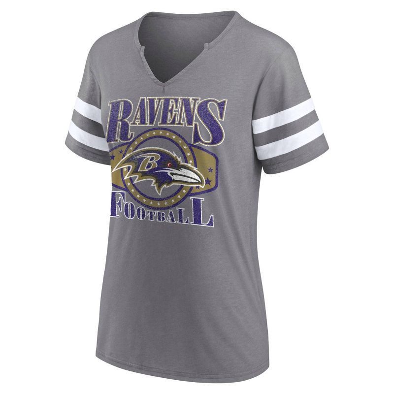 slide 1 of 3, NFL Baltimore Ravens Women's Gray Short Sleeve Split Neck T-Shirt - M, 1 ct