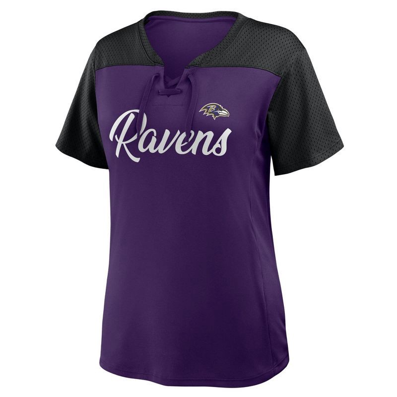 slide 1 of 3, NFL Baltimore Ravens Women's Short Sleeve Lace Up V-Neck Top - L, 1 ct