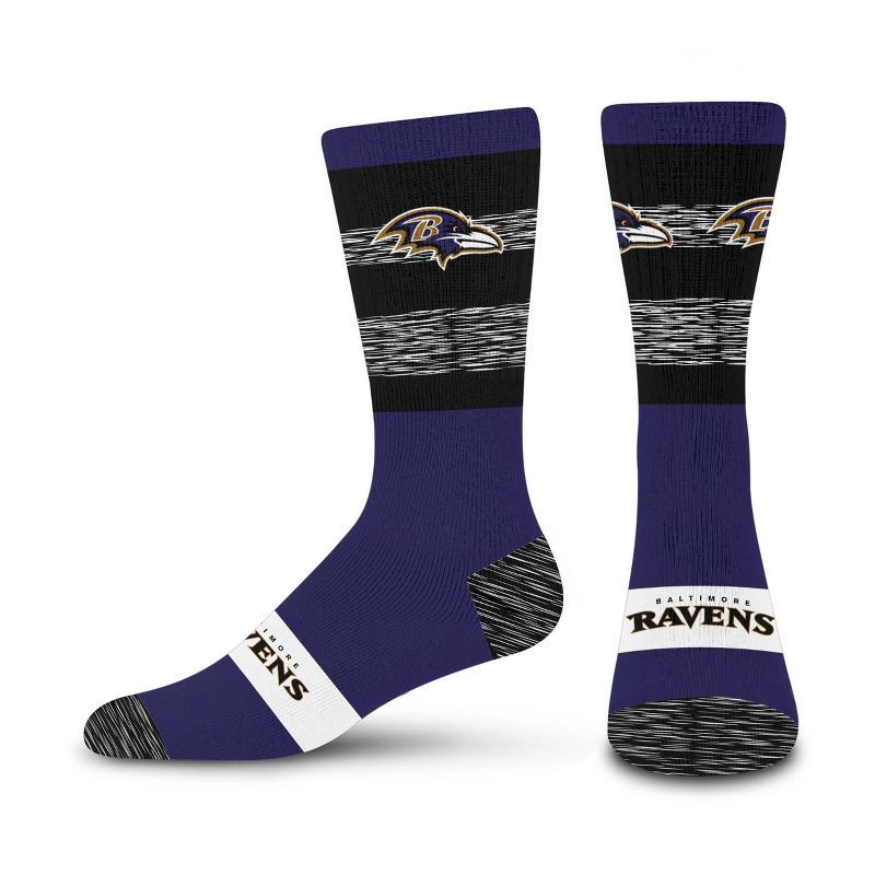 NFL Baltimore Ravens Youth Mixer Crew Socks: Cushioned Heel & Toe, Kids Size 7-9