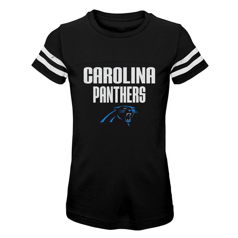 slide 1 of 1, NFL Carolina Panthers Girls' Stripe Sleeve Fashion T-Shirt - XL, 1 ct