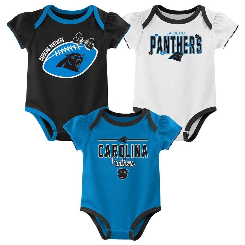 slide 1 of 4, NFL Carolina Panthers Girls' White 3pk Bodysuit - 6-9M, 3 ct