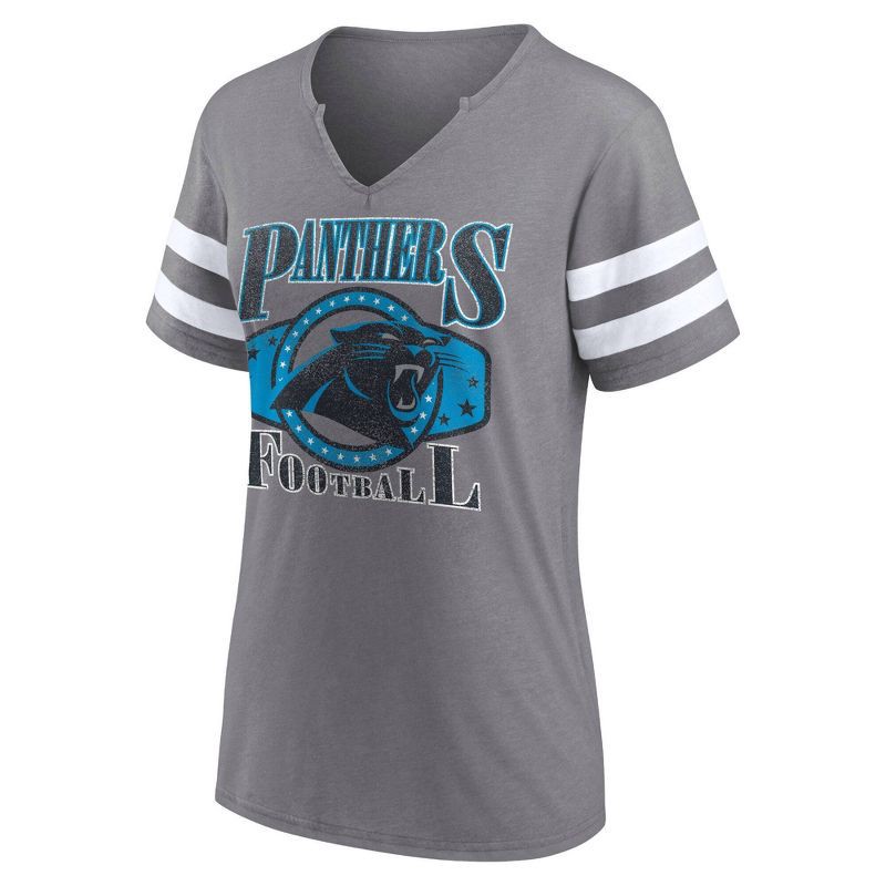 slide 3 of 3, NFL Carolina Panthers Women's Gray Short Sleeve Split Neck T-Shirt - XXL, 1 ct