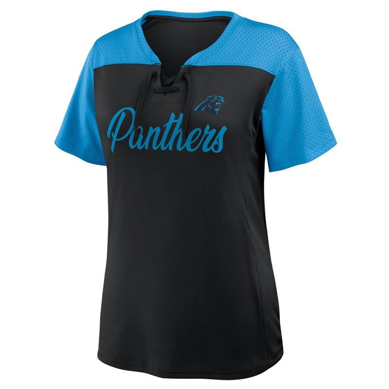 slide 1 of 3, NFL Carolina Panthers Women's Short Sleeve Lace Up V-Neck Top - S, 1 ct