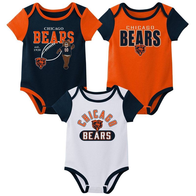 slide 3 of 4, NFL Chicago Bears Boys' White 3pk Bodysuit - 3-6M, 3 ct