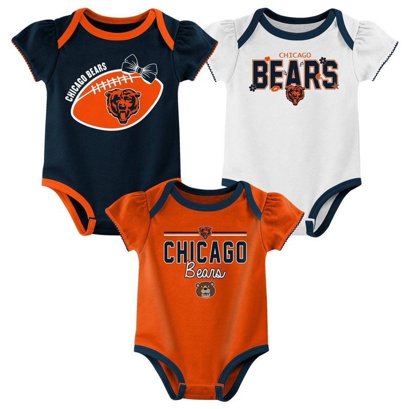slide 1 of 4, NFL Chicago Bears Girls' White 3pk Bodysuit - 12M, 3 ct