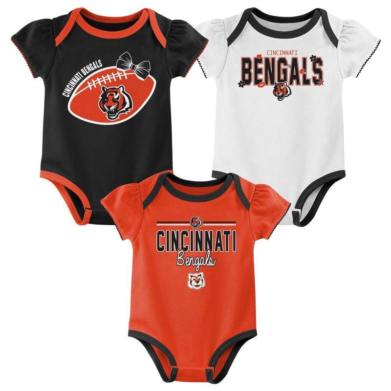 slide 1 of 4, NFL Cincinnati Bengals Girls' White 3pk Bodysuit - 3-6M, 3 ct