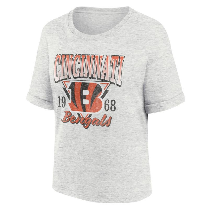 slide 1 of 3, NFL Cincinnati Bengals Women's Oatmeal Heather Rolled Sleeve T-Shirt - S, 1 ct