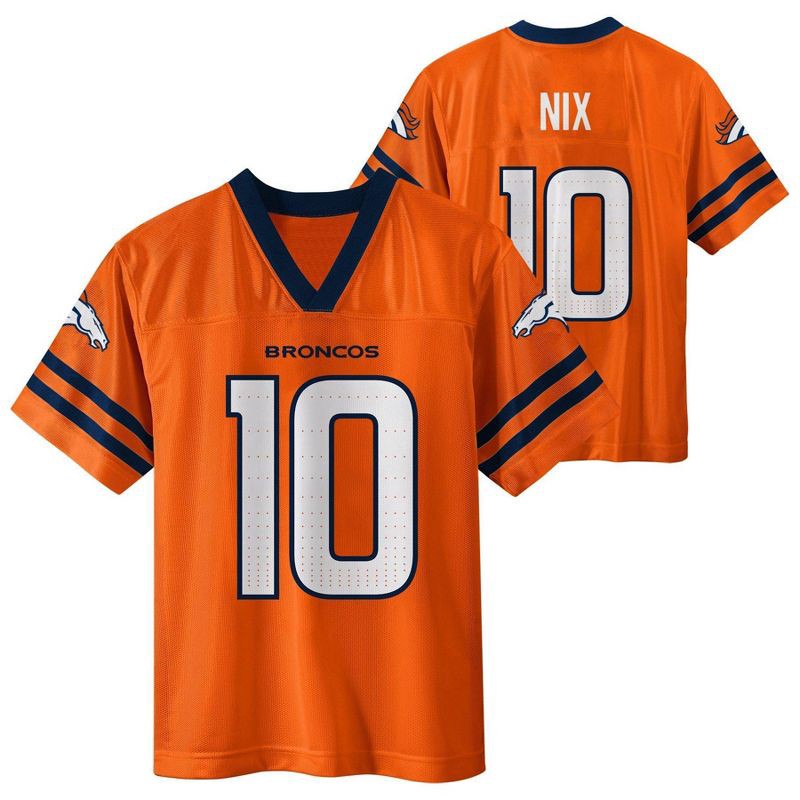 slide 1 of 3, NFL Denver Broncos Bo Nix Boys' Short Sleeve Jersey - L, 1 ct