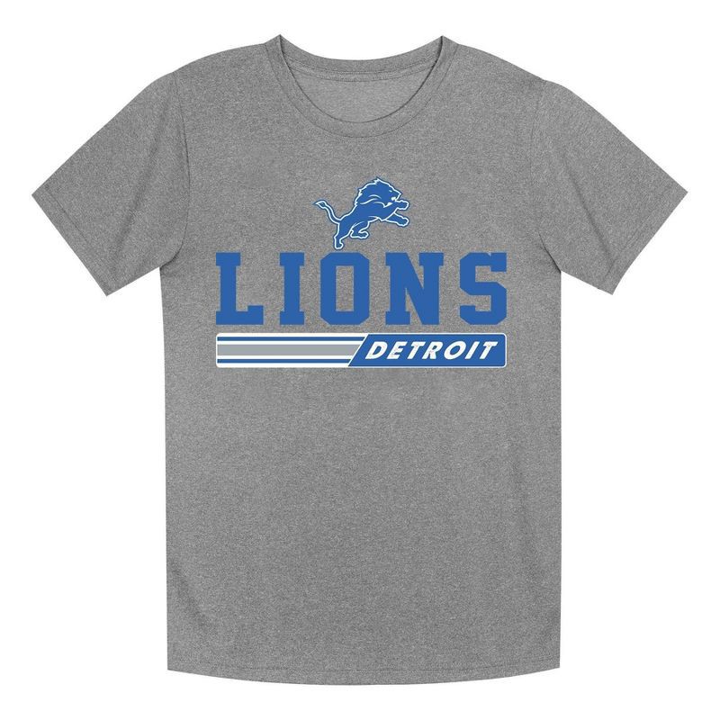 slide 1 of 1, NFL Detroit Lions Boys' Gray Heather Short Sleeve Poly T-Shirt - L, 1 ct