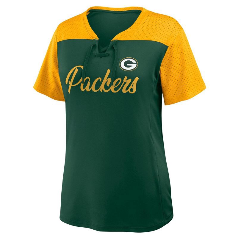 slide 3 of 3, NFL Green Bay Packers Women's Short Sleeve Lace Up V-Neck Top - XXL, 1 ct