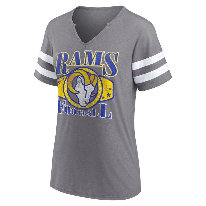 NFL Los Angeles Rams Women's Gray Short Sleeve Split Neck T-Shirt - L