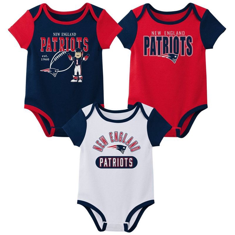 slide 1 of 4, NFL New England Patriots Boys' White 3pk Bodysuit - 0-3M, 3 ct