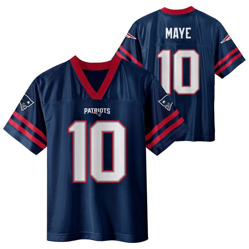 slide 1 of 3, NFL New England Patriots Drake Maye Boys' Short Sleeve Jersey - XL, 1 ct