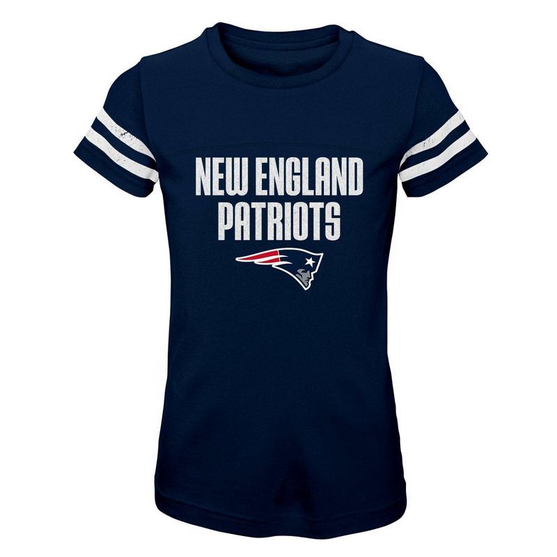 slide 1 of 1, NFL New England Patriots Girls' Stripe Sleeve Fashion T-Shirt - S, 1 ct
