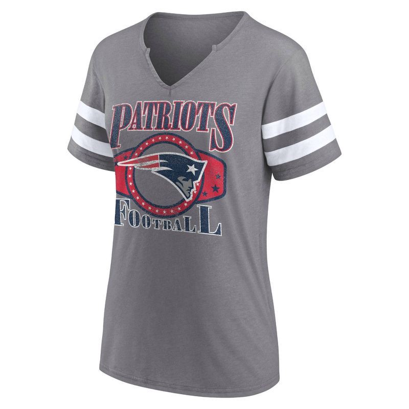 slide 3 of 3, NFL New England Patriots Women's Gray Short Sleeve Split Neck T-Shirt - XL, 1 ct