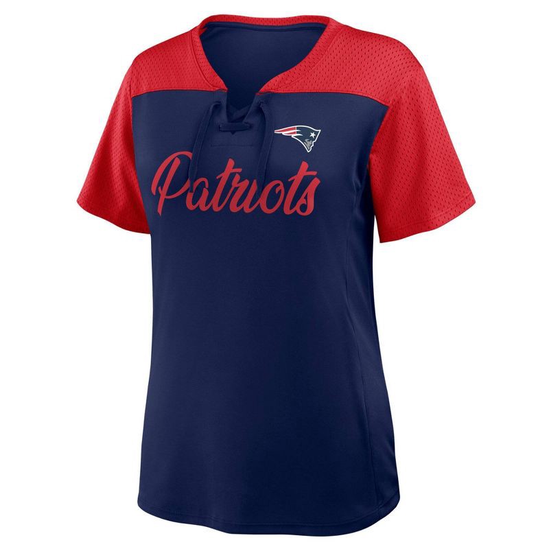 slide 3 of 3, NFL New England Patriots Women's Short Sleeve Lace Up V-Neck Top - XL, 1 ct