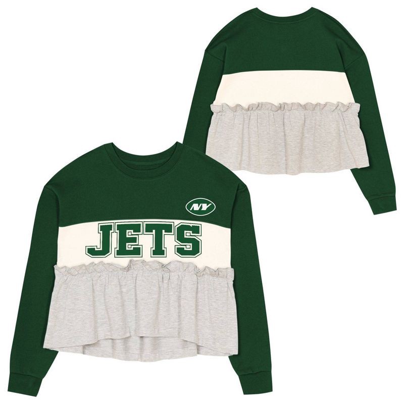 slide 1 of 3, NFL New York Jets Girls' Crew Neck Fleece Sweatshirt - L, 1 ct