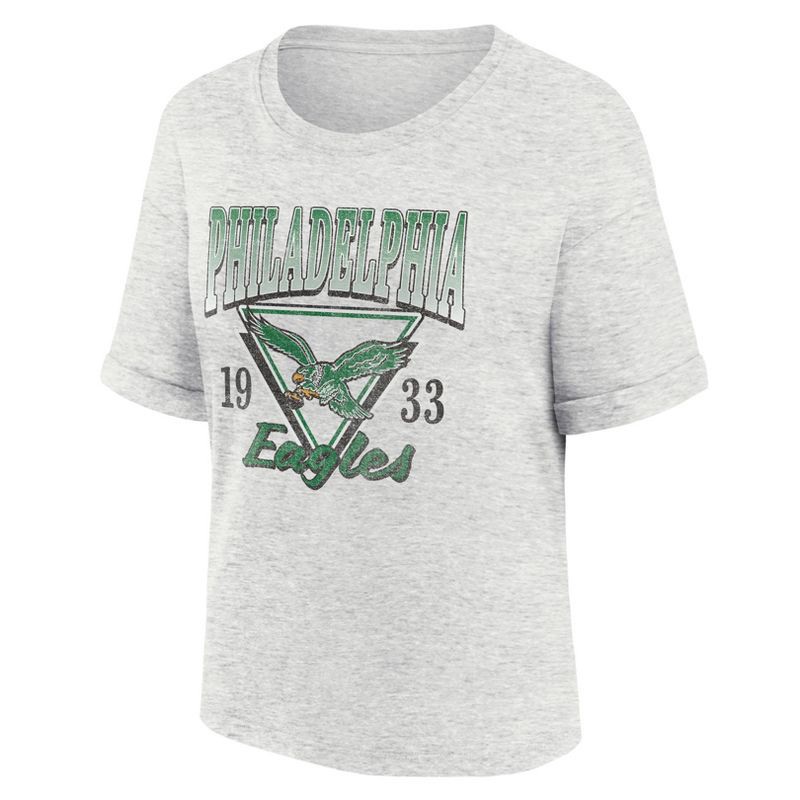 NFL Philadelphia Eagles Women's Oatmeal Heather Rolled Sleeve T-Shirt - M