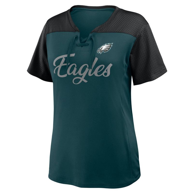 slide 3 of 3, NFL Philadelphia Eagles Women's Short Sleeve Lace Up V-Neck Top - XL, 1 ct