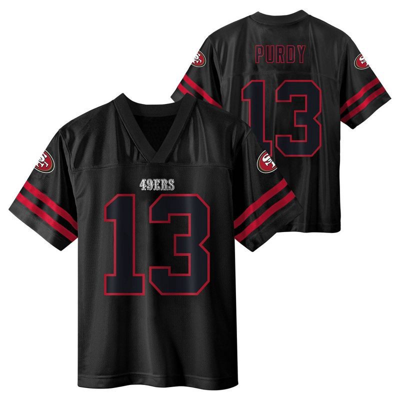 slide 3 of 3, NFL San Francisco 49ers Brock Purdy Boys' Black Short Sleeve Jersey - L, 1 ct