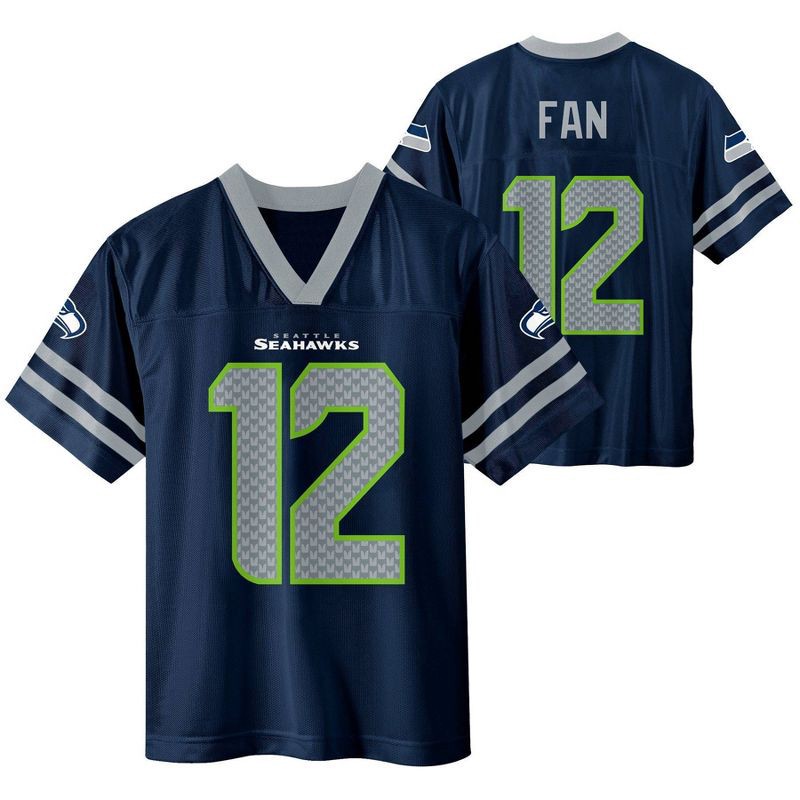slide 3 of 3, NFL Seattle Seahawks 12 Fan Boys' Short Sleeve Jersey - XL, 1 ct