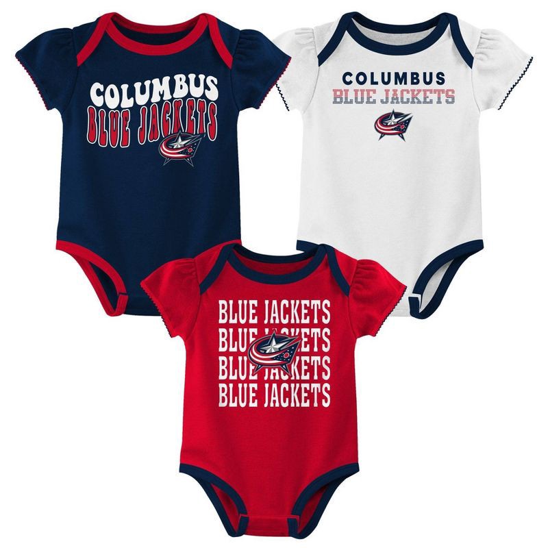 NHL Columbus Blue Jackets Infant Girls' 3pk Bodysuits - 3-6M